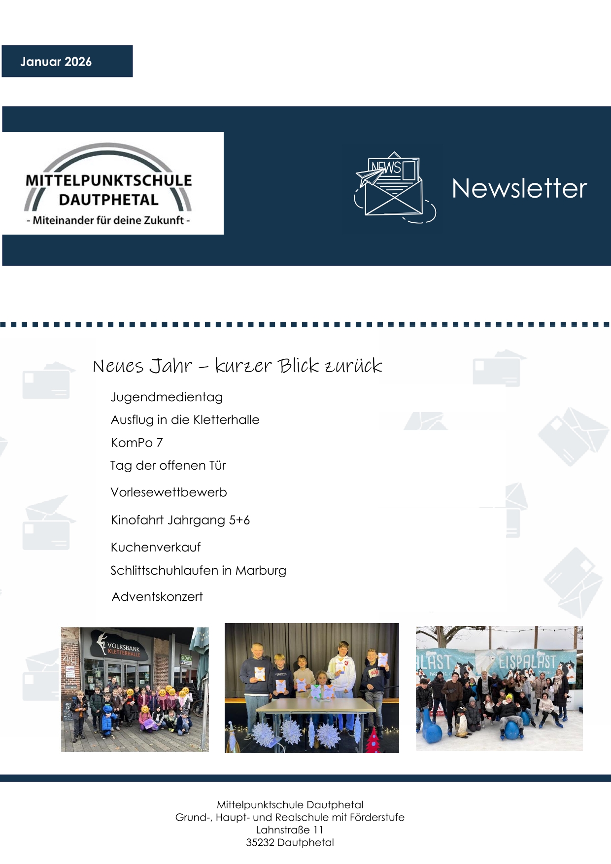 Die Termine des laufenden Schuljahres finden Sie im Kalender unter Service => Terminkalender.